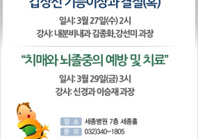 3월 27일(수) ‘갑상선 기능이상과 결절'/29일(금)'치매와 뇌졸중' 건강강좌 개최